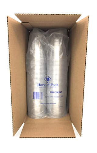 PACK OF 200 COUNT 12oz CRYSTAL CLEAR PET PLASTIC CUPS; 98mm top diameter (will fit tightly and perfectly with standard size lids), Lid and Straws not included.