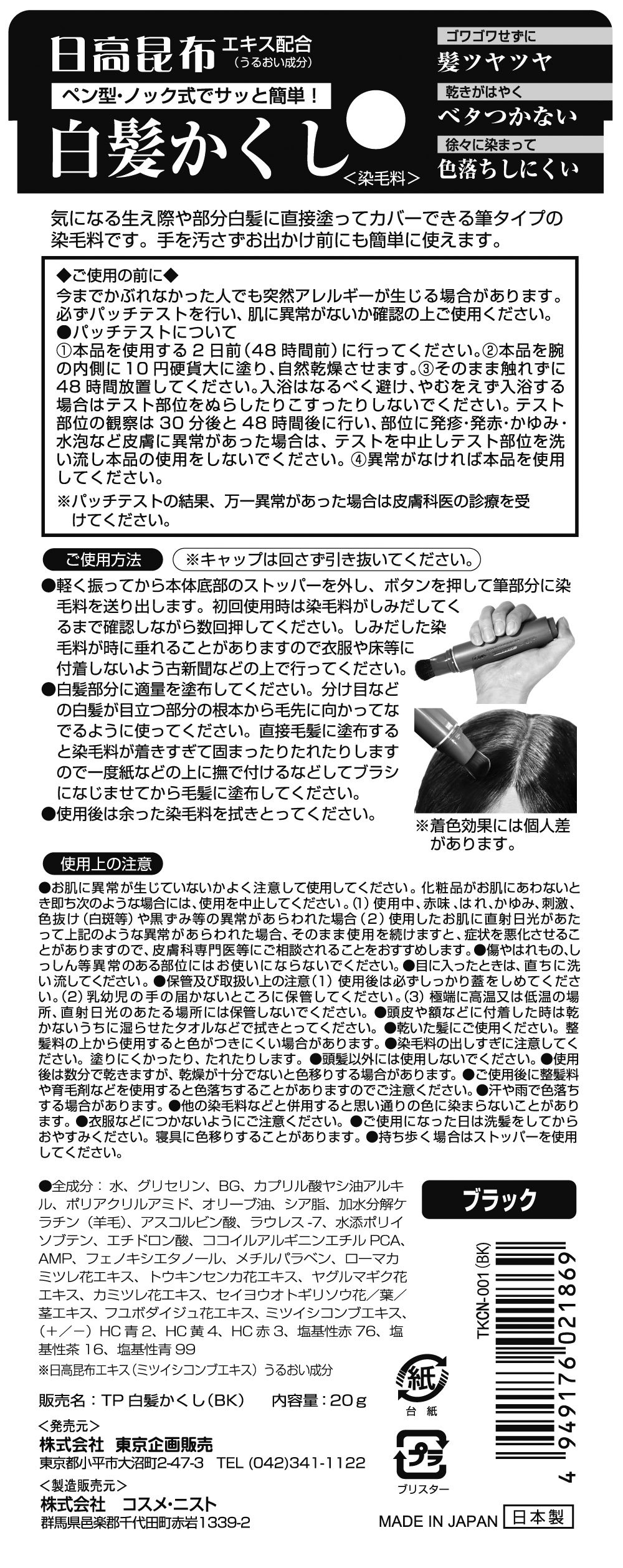 Topran Hidaka kombu part white hair or comb black 20g