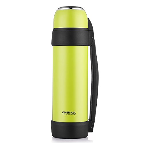 ONEISALL DGYBL108 Stainless Steel Vacuum Insulated Flask,Large Capacity Bottle with Leak Proof Inner Cap and Strap Good for Hiking/Camping/Car Travel,2.2 Litre (Green)