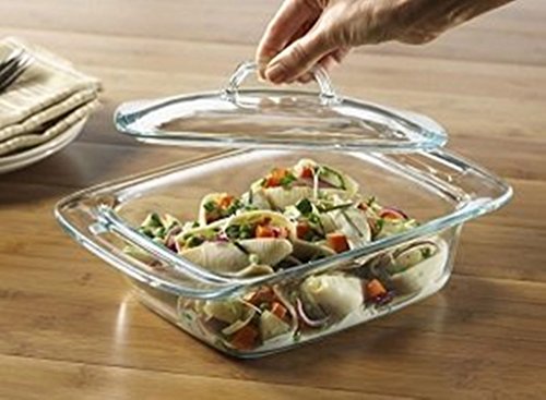Size:Rectangular w/Large Handles Pyrex Bakeware 2-quart dish with lid includes 1-each 2-quart dish, 1-each 2-quart glass cover. Pyrex Bakeware is durable, transparent for easy monitoring of baking progress and provides good heat conduction for even, consistent baking. There's no substitute for Pyrex, the original glass bakeware. Introduced 90 years ago and made of a durable, high temperature material, Pyrex remains the ideal medium for safe, dependable food preparationFeature