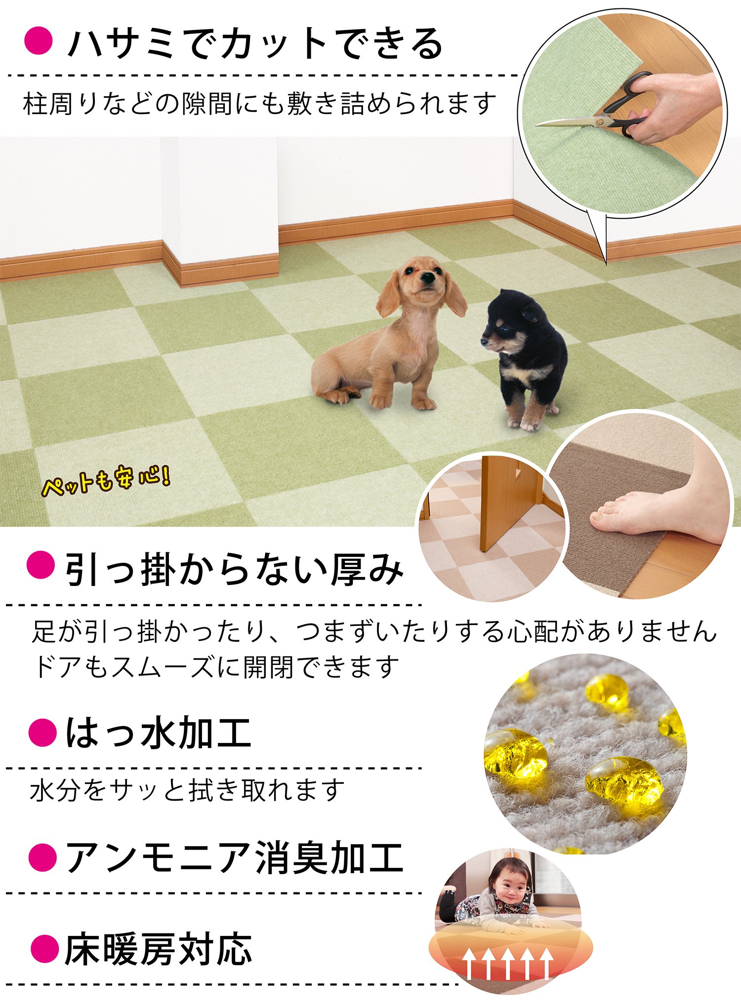 It is a barrier-free tile mat that you can use even for young children and wheelchairs elderly people because it is thin because the fabric is thin, not obstructing the opening and closing of the door.