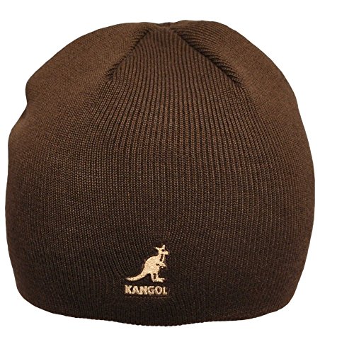 Product DescriptionThe Kangol roo makes its long-awaited reappearance on the Kangol Cuffless Beanie. Made of 100% acrylic, this stylish Kangol beanie features an embroidered roo logo. Imported.