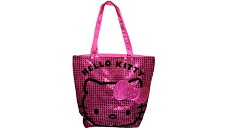 Hello Kitty Shimmery Sequin Pink Bow Tote Bag 15" x 14 "