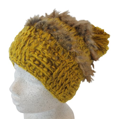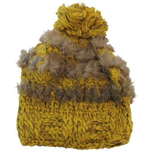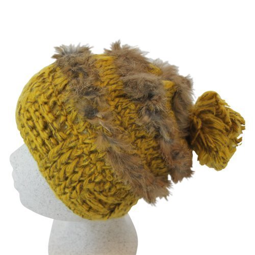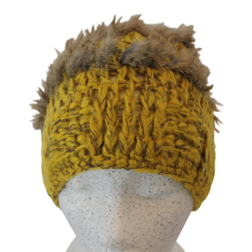 -. Title : Attleya Damen, Mütze, Kunstfell, Braun, Gelb, mit tollen Applikationen