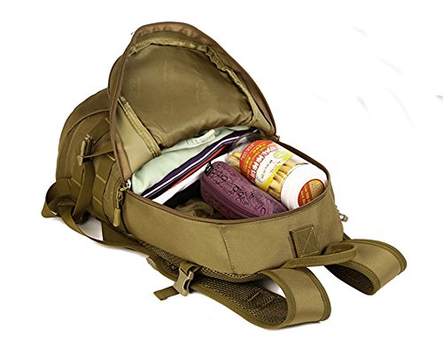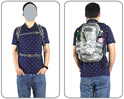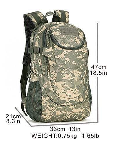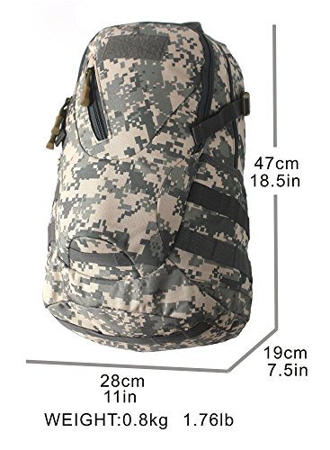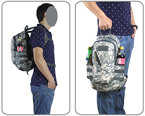 -. Feature : The backpack uses high-strength 1000D nylon fabric which is for military use, it can resistant to high temperature and cold, waterproof and scratch-retardant,wear resisting and uneasy to lose the color. All threads and ribbons are used by the fabric which for military use, with beautiful appearance,not distortion and solid durable. / There is waterproof lining in the backpack with strong waterproof performance to ensure prevent water coming in moist surroundings. / The capacity is about 25L,net weight is 1.65lb, there is cup bag in two sides, the main bag can hold 14 inch laptop, books in A4 paper size and daily commodity. / The spare parts of the pack are all adopted as the same color as the pack with high-strength buckle, it can resistant to high temperature and cold, not distortion and no crack. / It can also prevent dust and easy to clean, back part is designed as sweet-absorbent breathable,so it's very suitable for sporting, traveling, hiking, running and Cycling, it's unisex.