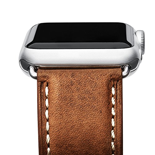 -. Feature : Top Notch Material, White Stitching: Vintage Top Grain Leather surface, soft microfiber lining & white handmade stitching decorate the beautiful appearance, as well come with a great wear comfort and fit. / Adjustable Strap Length: Designs with 7 holes for length control, freely adjusts the length to fit your wrist. Fit wrists: 140-220mm (for Apple Watch 42mm). / Timeless Classic Buckle: The buckle is made of solid stainless steel, also the clasp pin is enough stable and long, never worry about the middle pin in the buckle disengages easily. Secure your Apple Watch with impeccable yet unpretentious style. / Sturdy Adapters: The adapter is sturdy enough for daily abrasion, also it comes with a mini screwdriver to tighten the screws before you wear the band. Without any worry that the adapters & screws fall apart easily. / 1 Year Warranty: You will be satisfied with this buying experience if you want a 100% Satisfaction Guarantee, including 60-day Money Back Guarantee, 12 months Warranty on manufacturing defects & excessive wear.
