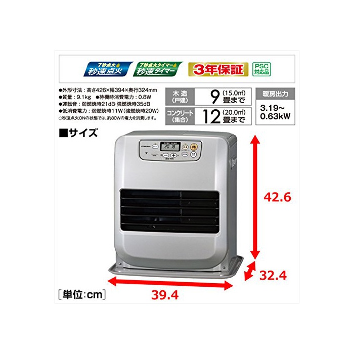 원본상품명: コロナ(CORONA) 石油ファンヒタ (木造9まで/コンクリト12まで) サテンシルバ FH-G3216Y(S)