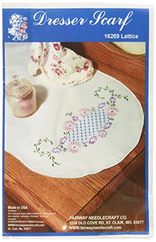 Fairway 16269 Dresser Scarf, Lattice Design, White, Perle Edge