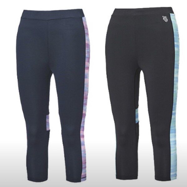 흡습 속건과 신축성이 우수한 폴리싱글스판 소재로 구성된 여성 기능성 7부 레깅 스. 신축성이 우수해 착용감이 편안하여 요가나 피트니스 활동시 레이어드 하기 좋음.