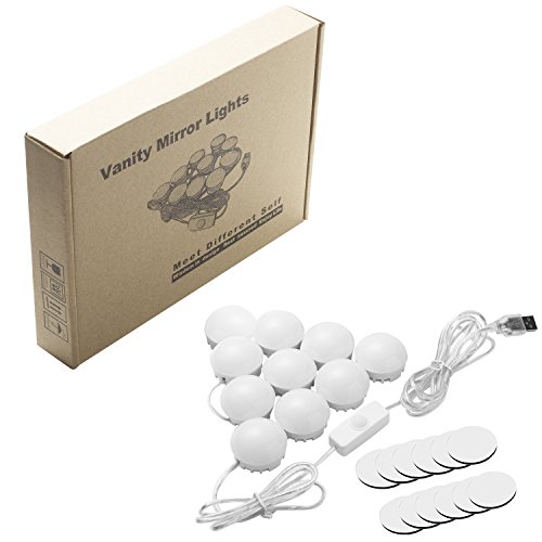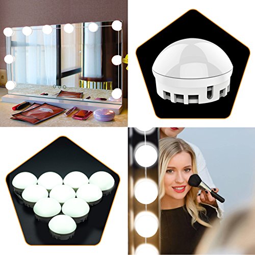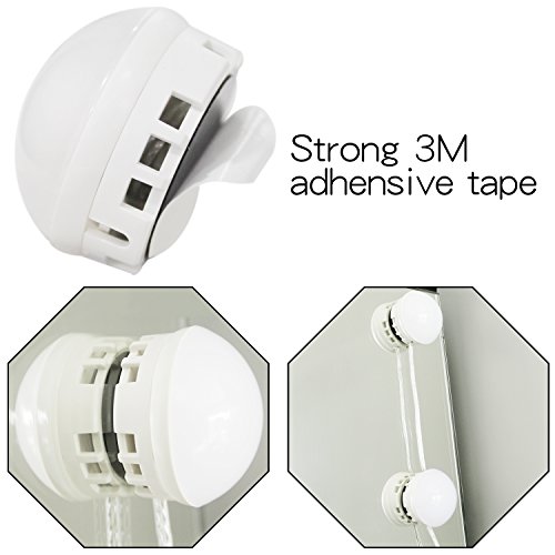 - 【Makeup lights 10 LED Bulbs Kit】 This Hollywood style dimmable LED light, 15.4Ft/ 4.7M full length for most mirror, provide enough brightness for makeup, long enough for DIY install, you can install the light as you like.