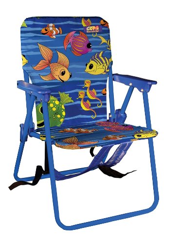 This one position kid's chair sits 10 Inch off and comes with molded plastic arms and convenient backpack straps for easy carrying