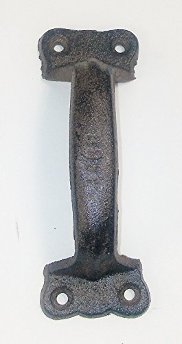 -. Feature : Cast iron all-purpose handle/pull - Smooth style design to give any home a touch of class - For homes, ranch house, cottages, bungalow, lake side homes, offices, chests - For Indoor or outdoor / Made of durable cast iron - Rustic dark bronze finish - 4 hole mounting - (Hardware not included) / Provide a sturdy door handle for all types of draws, chests, cabinets and etc. - Rustic old country western look - (Hand by 4 screws - Not included) / Approx Dimensions: 6 1/2 inches long x 2 inches width x 1 1/2 inches projection - Can also, be used on a barn, shed, garage, and etc - Indoor or outdoor use - New, never been used / Note: To see cast iron low price products +++ Search on Amazon: ABC Products Cast Iron