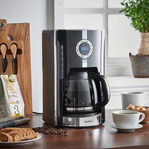 VonShef 975W Digital Filter Coffee MakerFor delicious morning coffees - rely on the VonShef 975W Digital Filter Coffee Maker. With a programmable timer, you can sync your alarm clock with this clever coffee machine, allowing you to brew a carafe of rich, fresh coffee whenever you want it.