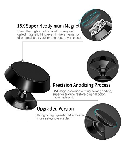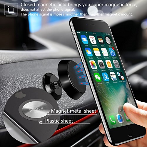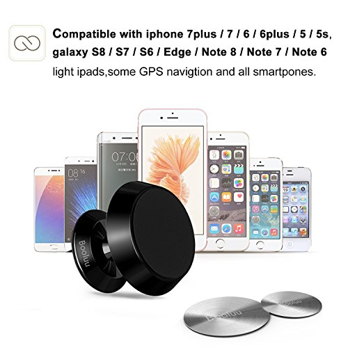 Booluu Magnetic Car Phone Mount Universal Cell Phone Holder Stand Stick On Dashboard for iPhone 7 / 7 Plus / 6S / 6 / 5s, Galaxy S8 / S7 / S6 / Edge / Note 8 and other Smartphones Mini Tablets, Black