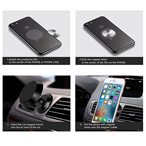 - 【What You Get】1pcs Universal Magnetic Car Mount, 2pcs Metal Plate(one big and one small ),2pcs Transparent Back Tape, 1pcs Exclusive Wipes, 1pcs Spare 3M Adhesive,30-Day Money Back Guarantee, 360-Day Warranty, Life-time Technical Support.
