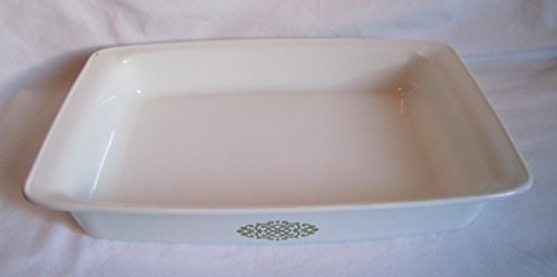 -. Feature : Vintage Corning Avocado Green Shell Oil Medallion Open Roaster / 2 3/4 Quart / 12 X 7 1/2 X 2 / Made in the USA / For range & microwave