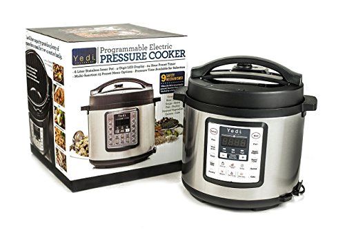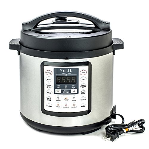 The YEDI Multifunctional Electric Pressure Cooker is guaranteed to be Safe, Convenient and Dependable. A 24-hour timer allows for delayed cooking. Automatic keep-warm holds the temperature of the food until you serve it. The cooking programs have been lab-tested thousands of times for optimal effect. PRESET FUNCTION KEYS: Rice, Multigrain, Soup, Meat, Stew, Poultry, Fish, Steam/Veggies, Beans, Chili, Sear/Sauté, Quinoa & Cake are controlled by an intelligent and convenient microprocessor. When any of the preset function keys are activated your pressure cooker calculates the appropriate cooking time during the pre-heating state based on the weight and temperature of the foods placed in the inner pot. The cooking time is then automatically set. WARM KEY: Warming time can be changed manually. SLOW COOK KEY: Cooking time can be changed manually. MANUAL KEY: Use this key to customize pressure cooking times if desired or required for recipes. The manual key can be used instead of the Rice, Multigrain, Soup, Meat, Stew, Poultry, Fish, Steam/Veggies, Beans, Chili, and Quinoa keys to set a custom amount of pressure cooking time. This key gives you the versatility necessary to cook almost anything. PRESSURE LEVEL KEY: If you press "pressure level" you can change the cooking pressure level from mid, to high or low. DELAYED COOKING KEY: If you press the "Delay" button the display screen will show the preset beginning time. Press "+" or "-" to adjust the delay time. Then press the "Hours/minutes" button to change Hour and minutes. Then press the "Start" button, the unit starts the delay time countdown. When the countdown comes to an end, the function will begin cooking and enter into the keep warm state when finish. The stainless steel inner pot is compatible with both Yedi Houseware Pressure Cookers and all 6 Quart Instant Pot models.Feature