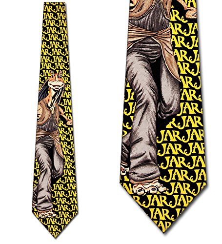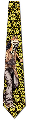 Binding : Apparel Product Description Jar Jar Binks is a fictional character from the Star Wars saga created by George Lucas! Show your love for such a fun character with this Jar Jar Binks Mens Necktie. This Jar jar Binks tie features Jar Jar Binks himself featured on the necktie contrasted against a black background with his name depicted in bright yellow lettering. A great gift for friends and family and perfect addition to any Star Wars collection. 0