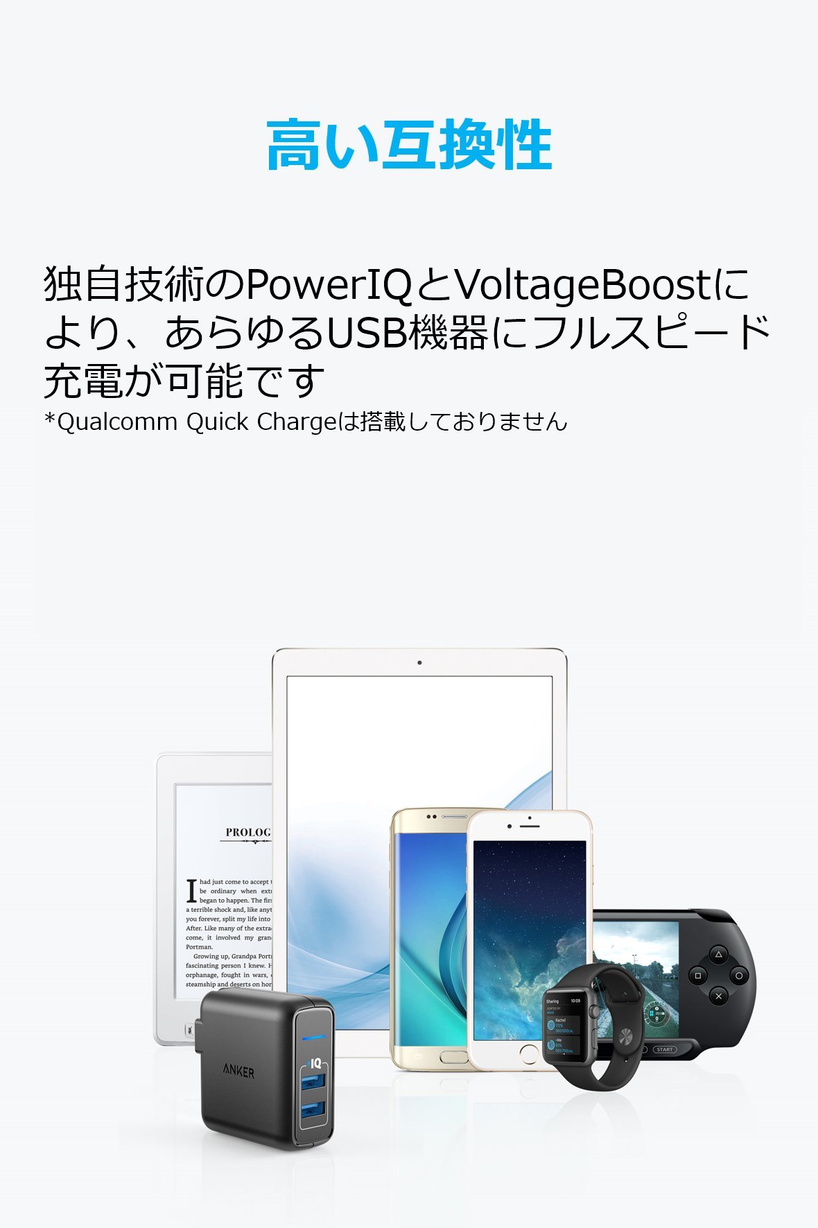 With Anker's proprietary charging technology PowerIQ and VoltageBoost, full speed charging is possible for any equipment.