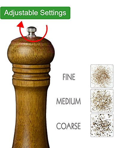 - QUALITY MATERIAL: Made of environmental oak wood with a timeless classic model to match almost any kitchen. Hardened aluminum rod for high performance and great through-put. The pepper mill has a comfortable grip and smoothly twisting top that provide convenience and speed for you.