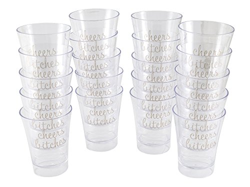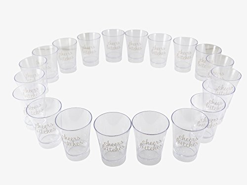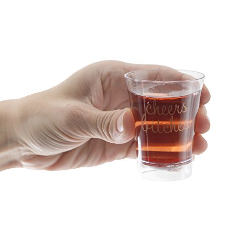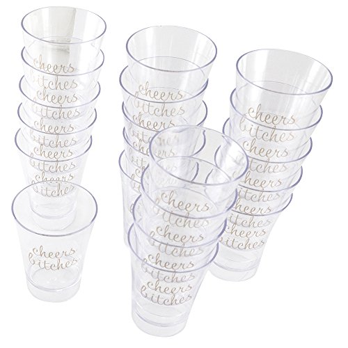 Get the party started For a festive touch that will make your party stand out, serve up liqueurs or wine samples in these sassy shot glasses. Each pink glass bears the phrase "Cheers Bitches", making it the ultimate bachelorette party accessory for your last hurrah as a single lady. With 20 shot glasses per pack, you and your bridesmaids can knock back several lemon drops or kamikaze shots to keep the good times rolling. Even if you don't have a specific occasion in mind for these playful shot glasses, they are must-have supplies for your home bar so you will be ready when your BFF shares her good news! Fun, feisty and food-safe Cheers Bitches Pink Shot Glasses are made of non-toxic, eco-friendly polystyrene plastic so they are suitable for a variety of uses. Their rigid plastic structure makes them ideal for scrumptious food samplings, petite party desserts and hors d'oervres. Best of all, they make after-party clean-up a breeze because they are disposable; or you can add them to the top shelf of your dishwasher and be ready to toast the next big engagement announcement. Each glass holds 2 ounces of liquid so you can liberally dispense tequila, amaretto and more. We strive to provide the best value to our customers We don't expect you to settle for anything less than a 5-star experience. If you have any questions, comments or concerns about your new Pink Plastic Shot Glasses, we encourage you to contact us at any time to resolve these matters. All your finest spirits will be prettier in pink when you add our Cheers Bitches Plastic Shot Glasses to your cart today. 0 |