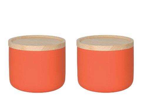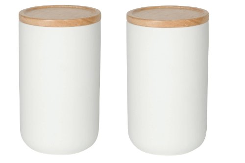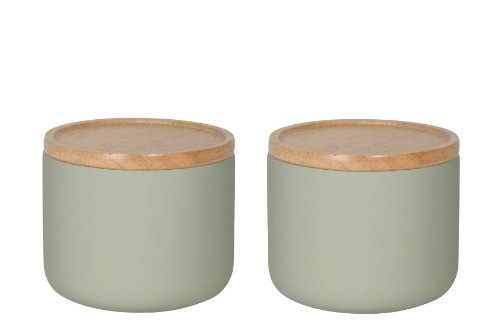 For over 45 years Now Designs has created fashionable, fun and functional kitchen textiles, table linens, gifts and decorative accessories for the home. Stoneware Canisters by Now Designs are a stylish storage solution for your home and kitchen. Available in a variety of sizes and colors, each is made from 100% porcelain. Featuring a wooden lid with a rubber gasket seal, these containers close tightly to keep air out and freshness in. Use in the kitchen for pastas, grains, candies and snacks or around the home for cotton balls, office supplies and more. Unique exterior matte finish for a contemporary look.