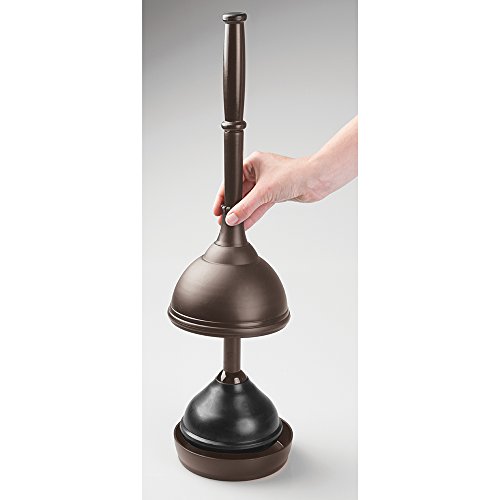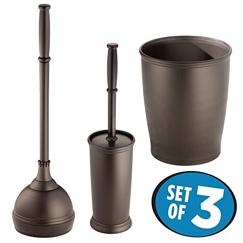 mDesign Toilet Bowl Brush, Plunger, Round Wastebasket Trash Can - Set of 3, Bronze