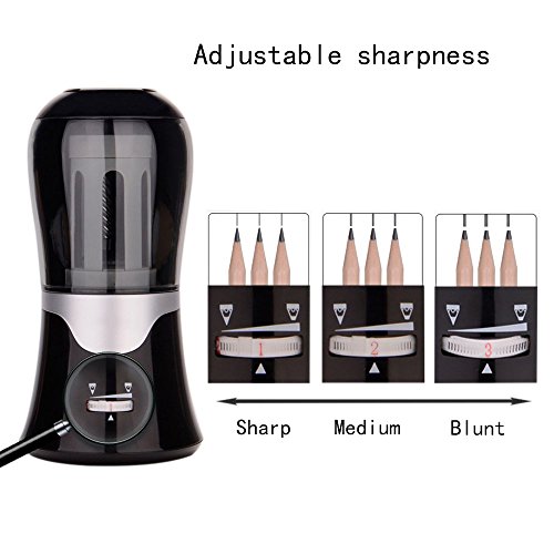- 【VARIABLE SHARPNESS ADJUSTMENT】 : Whether you prefer a sharp, medium or blunt tip,electric pencil sharpener also can satisfy you.Portable electric pencil sharpener can meet different writing habits according to different needs. Choose pencils tips that are suitable for you.Best gift for kids and adults.