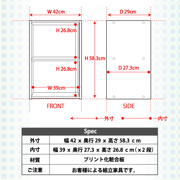 ●内寸:幅39cm×奥行き27.3cm×高さ26.8cm(×2段)