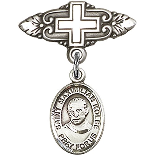 -. Title : Sterling Silver Baby Badge with St. Maximilian Kolbe Charm and Badge Pin with Cross 1 X 3/4 inches