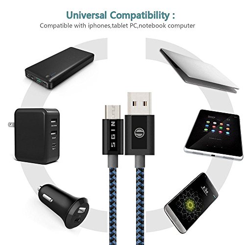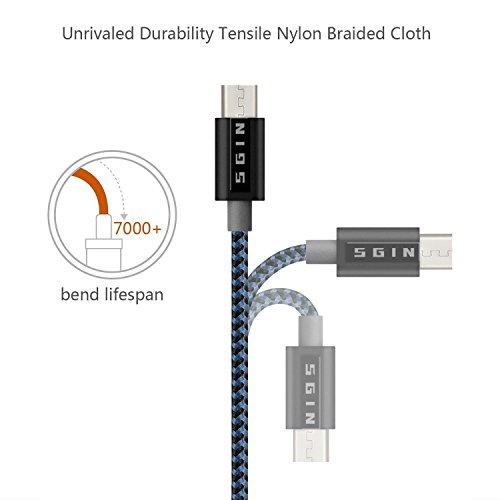 Incredibly Durable and Long-Lasting Performance: The micro USB cable is covered with extra sturdy nylon jacket, which prevents it from damage, tangles and kinks caused by over-charging and daily usage. The well-built aluminum connector resists heat and corrosion and fits every case.