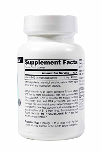 Methylcobalamin is an active coenzyme form of vitamin B-12 that is more bioavailable that the common form, cyanocobalamin. B-12 is essential for healthy red blood cells, energy level, and DNA production, and plays an important role in maintaining normal nerve function. Older people tend to have less stomach acid, which may result in less absorption of B-12 from food. Supplementing with Source Naturals Methylcobalamin B-12 can help ensure adequate intake.Feature