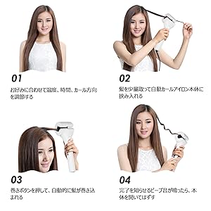 - 巻きボタンを押して、自動的に髪が巻き込まれます