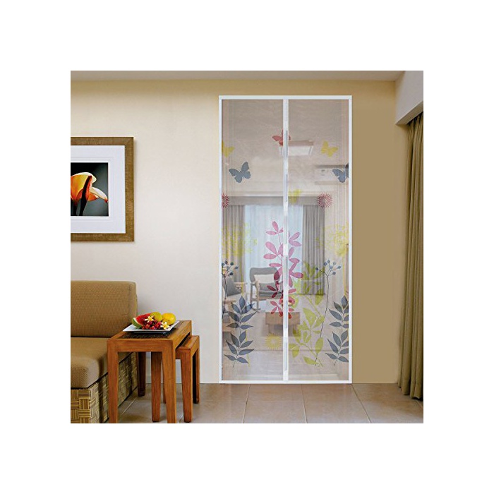 Bluesim 현관용 문 방충방 문문 커튼 마그넷 부착 자동으로 꼭 닫힌 도어용 문 100cmX210cm 화이트