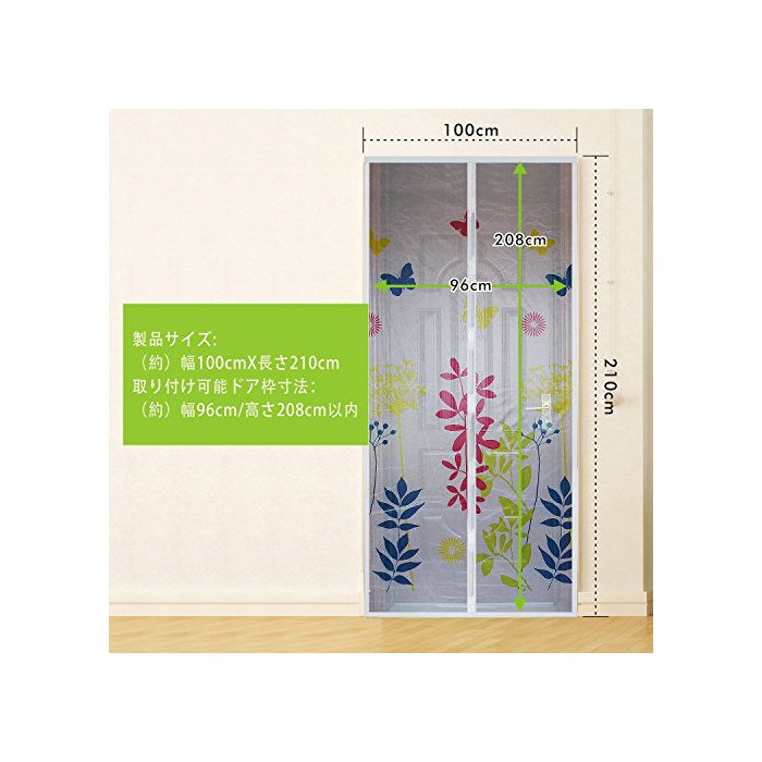 부착 간단!부속 면패스너에 도어 프레임에 고정 하는 것만으로 완료입니다.나사나 공구 등을 사용했 귀찮은 작업은 일절 없습니다.팩키지 내용: 현관용 문(약)폭100cmX길이210cm 1 매들어감 매직 테이프 상부용100cm*1개 양측 용8cm*10개