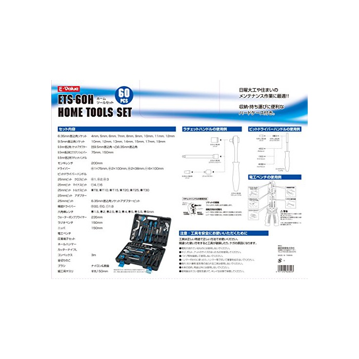 원본상품명:E-Value ホムツルセット 日曜大工住まいのメンテナンス用 60点組 ETS-60H