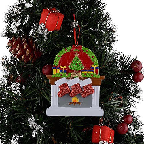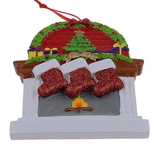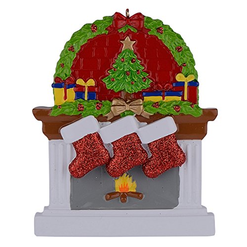 Personalized Fireplace Stockings Family Ornaments of 3 Christmas Gifts