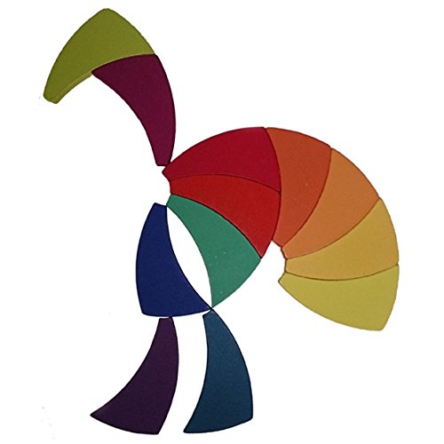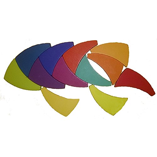 The AMAZING Chrysanthos TrigeodTM color wheel puzzle consists of 12 identical wooden pieces that make up a colorful 6 1/4" (16cm) diameter wheel. This shape has the extraordinay ability to create some incredibly fun designs and patterns. The wheel made up of 12 Trigeod shapes and also makes a challenging puzzle, by itself. At first glance, the wheel just looks like an elegant design, however with a little imagination you can look beyond and discover the intrinsic beauty of the wheel. Create flat 2D designs or build up 3D designs, limited only by your imagination. Some designs may be recognizable animals or creatures, while others are beautiful abstract shapes. The possibilities are endless and the designs are all using multiples of one simple shape. The play aspect of the wheel was discovered 12 years ago by a 9 year old boy and is only now available for everyone to enjoy and be amazed by its unusual properties. The wheel is very easy to play with and stimulating for children.... it mesmerizes those that dare play with it. Unleash your imagination with this truly unique product. The Chrysanthos Trigeod Color Wheel Puzzle has been certified safe for children 2+ and has passed all requisite safety testing.Feature