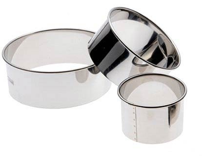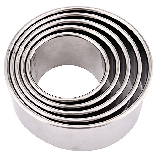 Package include 5 different sizes of round stainless steel cookie cutters,diameter are 3.54in, 3.14in, 2.75in, 2.36in, 1.96in.