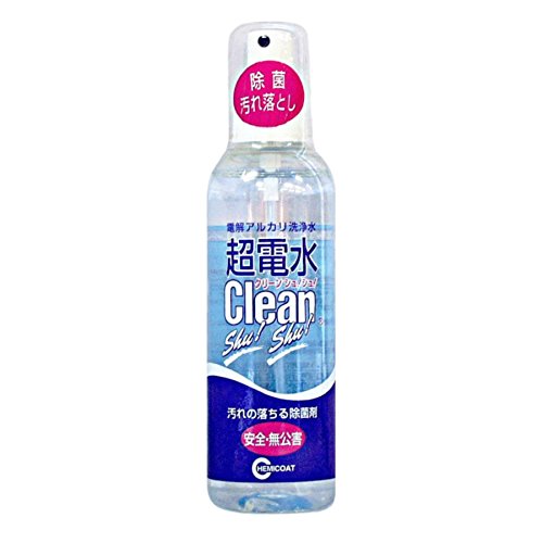 商品サイズ (幅×奥行×高さ) :45×45×170mm 内容量:180ml 商品紹介 水から生まれたアルカリ超電水洗剤 驚異の洗浄・除菌力 クリーンシュ、シュ。水100%だから口の中に入っても大丈夫。 強力。 除菌・洗浄。 しつこい油汚れ・・・でも洗剤を使いたくない場所に。 ●電解アルカリイオン水 5つの秘密:1.油汚れに強い …シュッとひと拭きスルッと落ちる。2.環境にやさしい …100%水でできてるから排水も安心。3.強力除菌 …30秒から1分で除菌。4.界面活性剤を使わない …二度拭き不要。5.嫌なにおいがしない …除菌の鉄則。 ●どうして水100%なのに汚れを落とせるの?:その1.すぐれた浸透力。その2.鹸化(けんか)作用。その3.タンパク質分解作用。 新幹線車両清掃や、自動販売機の清掃など、衛生管理に厳しい企業でも採用。