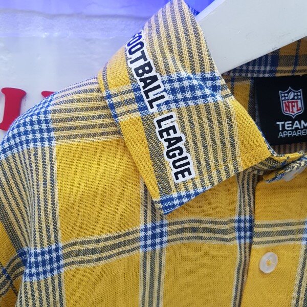 트임이 들어간 셔츠이며 카라에 레터링이 포인트이다