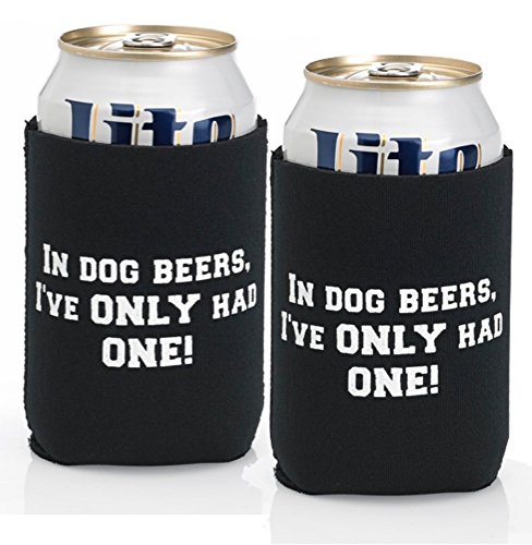 - Beer lovers rejoice... this unique cozy will keep your drink cold while adding humor to every occasion with this funny quote: "In dog beers, I've only had one!" (2-pack)