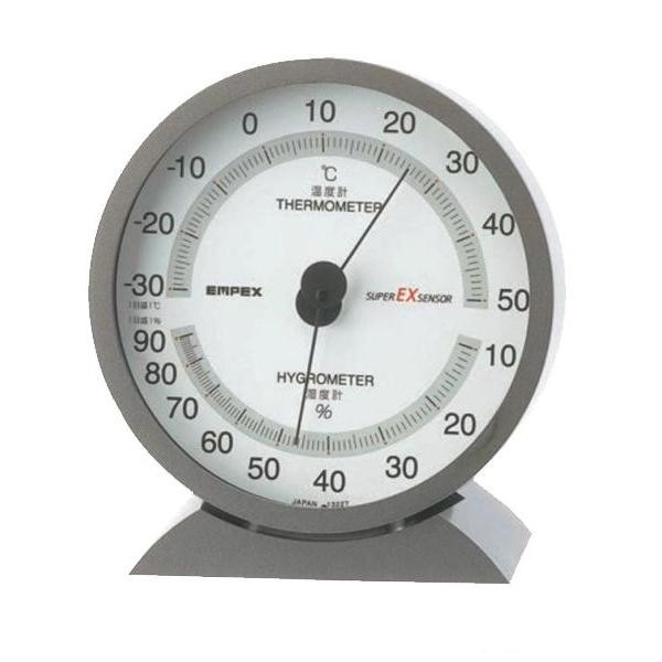 | エンペックスのスーパーEXシリーズは、長年培ってきた精密センサ技術と厳しい品質保証システムにより、高精度スペックを実現。更に、文字盤や外装枠に至るまで高品質仕上げを施した、確かな品質とインテリア性豊かな高品位温度・湿度計です。コンピュータールームや病院、美術館など精度の高い環境管理を必要とされる場所にも、要所要所に設置してお使いください。台をとれば壁掛けとしても使用できます。 |