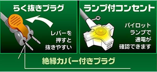 ソフトタイプのらく抜き&通電ランプ付作業用延長コード。