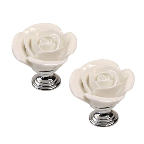 Set of 2 Fashionable Cabinet Knobs Drawer Handle Rose Design Drawer Pull Handles White