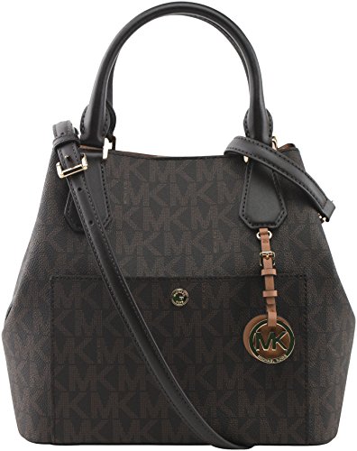 -. Brand : Michael Kors -. Color : Brown Peanut -. Department : womens -. Feature : Open top with snapped closure; 4¡± double shoulder strap drop / Removable and adjustable leather shoulder strap 22" drop / Cinched sides of bag for a different look; Gold tone MK logo plated on front / Flat pocket on front with snap closure; 1 zipper pocket & 1 slip pocket / Measurements: 10 - 13" W x 10" H x 6¨ö"D p -. ProductGroup : Shoes -. ProductTypeName : HANDBAG -. Size : One Size -. Title : MICHAELL Michael Kors Women's Greenwich Large Leather Grab Bag, Style 35S7GGRS3B