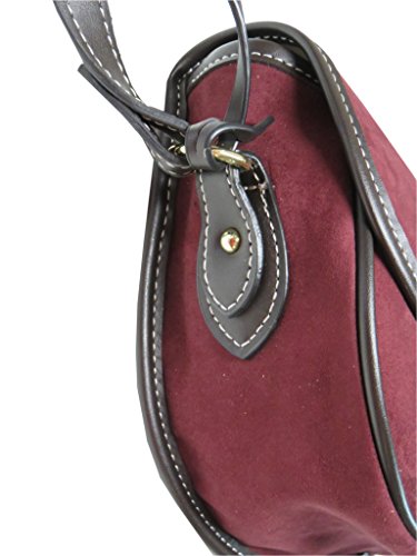 London Fog Women's Purse Handbag Large Flap Crossbody Plum Suede