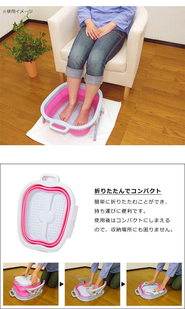 fk094igrjsどこでも簡単に足湯が楽しめる、折りたたみ式足湯バケツです サイズ (約)W46.5×D40.5×H19.1(収納時5.9)cm 個装サイズ:47.5×41.5×7.0cm 重量 約1kg 個装重量:1250g 素材・材質 ポリプロピレン、サーモプラスチックラバー 仕様 容量:約10L 耐熱温度:約60度 付属品 取扱説明書 生産国 中国 折りたたみ式足湯バケツ どこでも簡単に足湯が楽しめる、折りたたみ式足湯バケツです