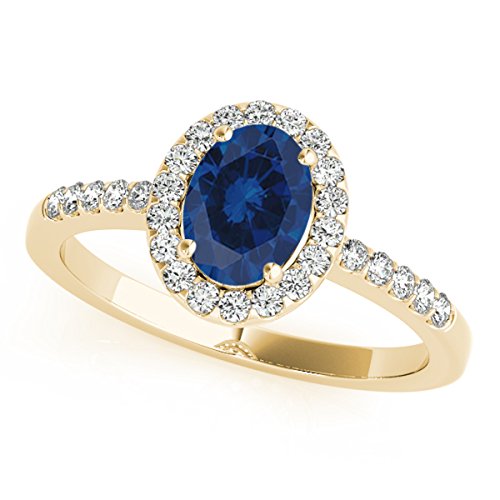 -. Title : 0.90 Carat Ttw Diamond And Oval Shaped Sapphire Ring In 10K Yellow Gold