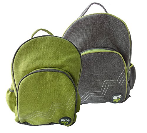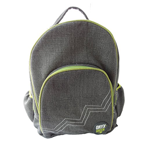 Studio : Onyx and Blue Corporation Publisher : Onyx and Blue Corporation Binding : Personal Computers Product Description Onyx and Green's Trendy Backpack comes with 2 side pockets, 2 front pockets, padded handles, straps and back. Available in two colors: Green Grey. Great use as a day bag, school bag, for work or travel. Item # 7900 ABOUT PRODUCTS WITH NATURAL RECYCLED FABRICS The use of natural materials such as jute and ramie leaf in pencil cases and school bags is a unique approach that brings ONYX GREEN products to another level. These materials are not only biodegradable and recyclable but they are also sure to impress with their practicality and their trendy look. 0